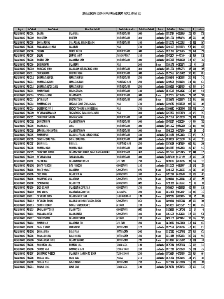 Senarai Sekolah Rendah Di Pulau Pinang Pdf